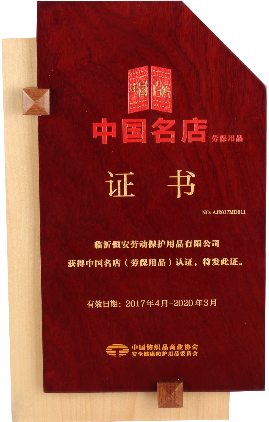 恒安勞保榮獲中國名店(勞保用品)